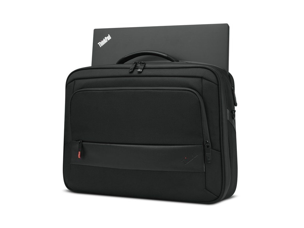Lenovo ThinkPad Professional 16-inch Topload Gen 2 Lenovo ThinkPad Professional 16'' Topload Gen 2 je tradiční aktovka s moderním vylepšením, která je zároveň chytřejší pro planetu. Tento funkční, ale přitom elegantní kufr Toppload přenáší, chrání a organizuje všechny vaše pracovní potřeby, zatímco prvotřídní, lehké materiály odolávají každodennímu opotřebení. *Přihrádka na počítač podporuje notebooky s úhlopříčkou až 16'' a má samostatnou polstrovanou kapsu na další menší zařízení. *Hlavní přihrádka je vybavena plnohodnotnou pracovní stanicí a úložnými kapsami na příslušenství a další drobnosti, včetně kapsy s blokováním RFID a klíčenky *Voděodolné materiály, vyztužené voděodolnou páskou na zipu, abyste se vyhnuli nepřízni počasí *Další úložná kapsa na předním panelu pro další úložné prostory *Jediná pohodlná rukojeť usnadňuje dojíždění *Vnější část vyrobena z 89 % z recyklovaného materiálu, což odpovídá 12 500ml lahvím na vodu (předpoklad 19 gramů na láhev)