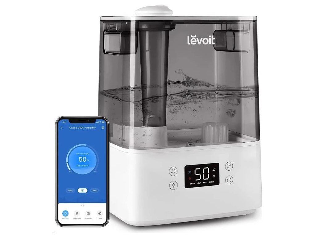 Zvlhčovač vzduchu Levoit Classic300S Smart je možné ovládať priamo na prehľadnom podsvietenom LED displeji alebo aj cez aplikáciu na chytrých zariadeniach Apple alebo Android. Alebo si ho môžete dokonca pripojiť do svojho Smart Home a ovládať hlasom cez Google Assistant alebo Amazon Alexa. Senzor vlhkosti zobrazuje vlhkosť v reálnom čase av automatickom režime tak okamžite reaguje na zmeny vlhkosti. Vždy by sa malo jednať o rozmedzie medzi 40 % až 60 %. Cez aplikáciu si môžete informácie kontrolovať alebo si svoje režimy plánovať.