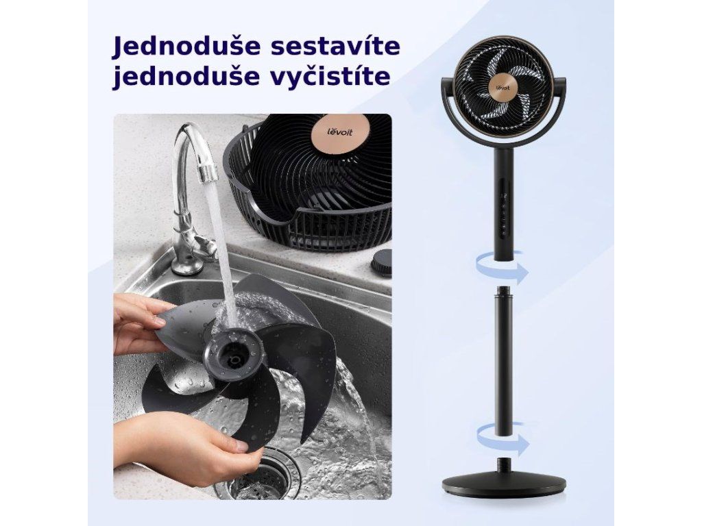 Stojanový ventilátor Levoit sa ľahko montuje bez potreby akéhokoľvek náradia, čo šetrí váš čas a námahu. Je navrhnutý tak, aby sa dal ľahko rozobrať a umyť vodou, čím sa zabezpečí hygienické prostredie a minimalizuje sa vírenie prachu po miestnosti. Vďaka tejto pohodlnej údržbe si môžete užívať čistý a svieži vzduch bez akýchkoľvek problémov.