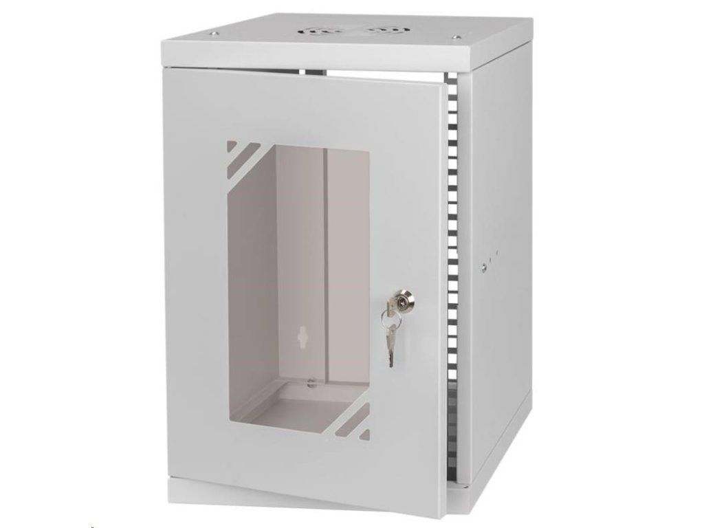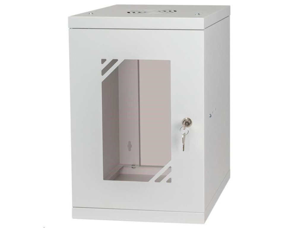 LEXI 10" nástenná skriňa Basic 9U, šírka 292 mm, hĺbka 300 mm, sklenené dvere, bez zadnej steny, sivá