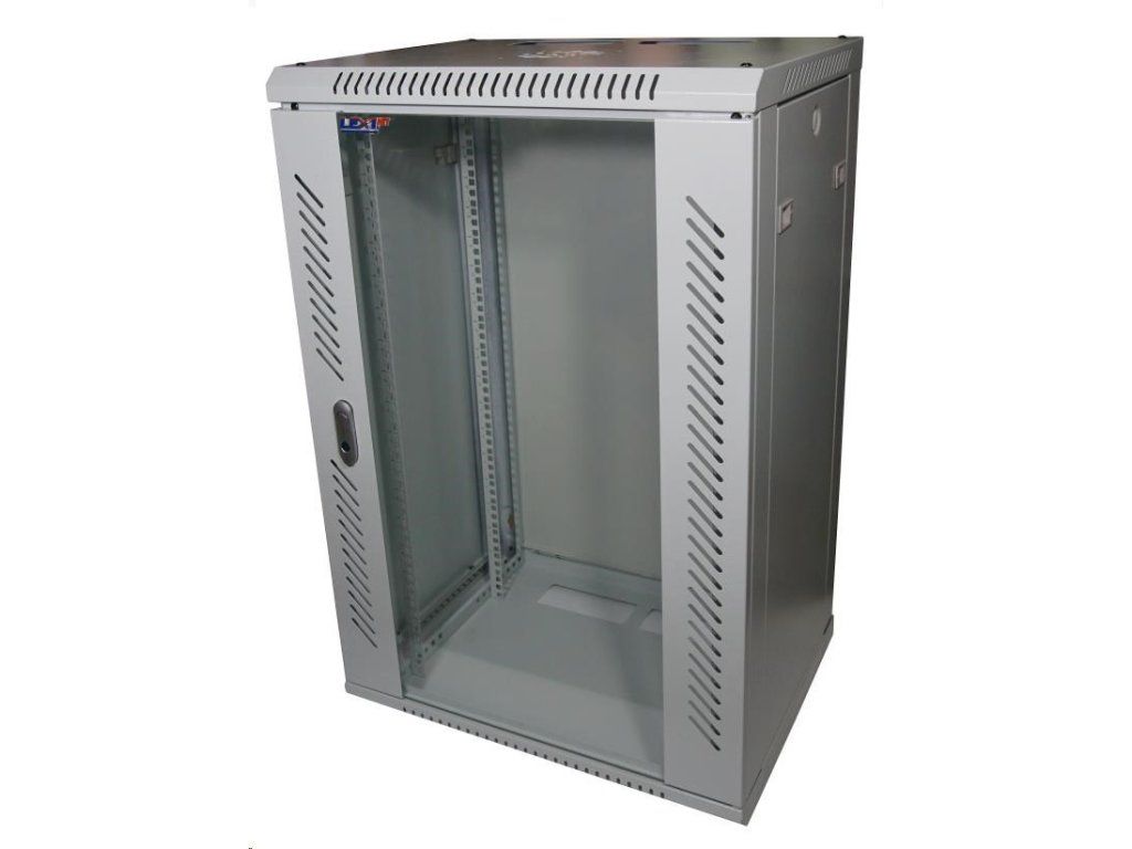 LEXI-Net 19" nástěnný rozvaděč 18U 600x600, nosnost 60 kg, skleněné dveře, svařovaný, šedý
