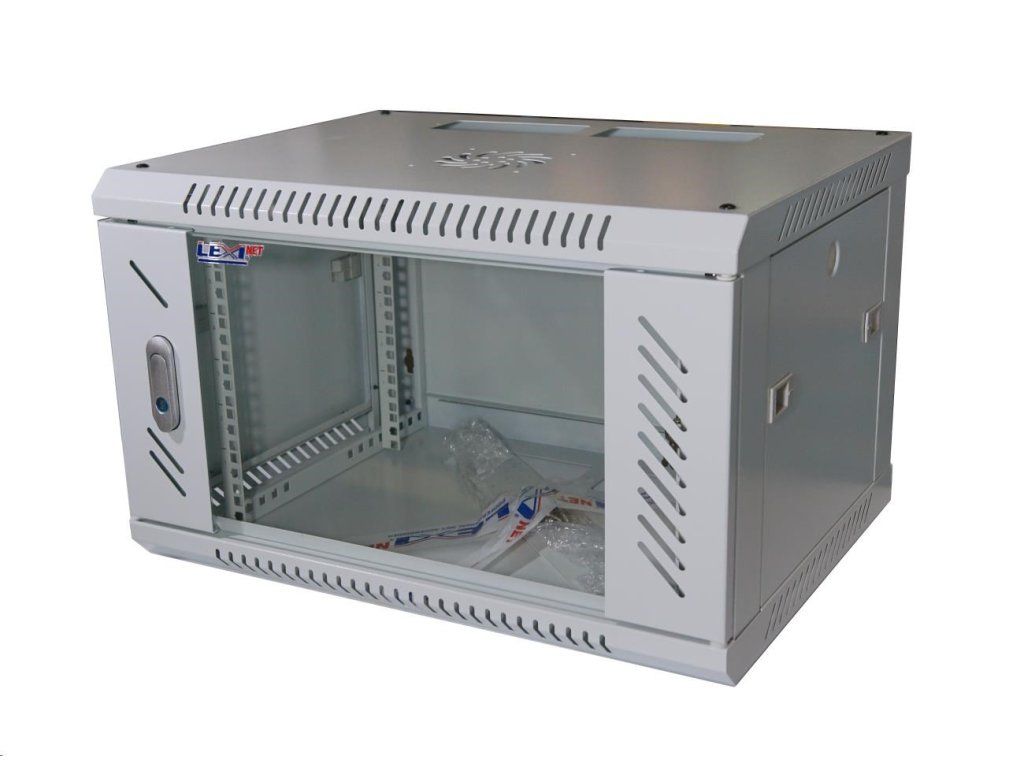 LEXI-Net 19" nástěnný rozvaděč 6U 600x450, nosnost 60 kg, skleněné dveře, rozložený, šedý