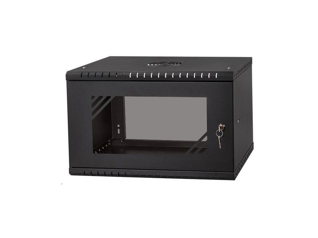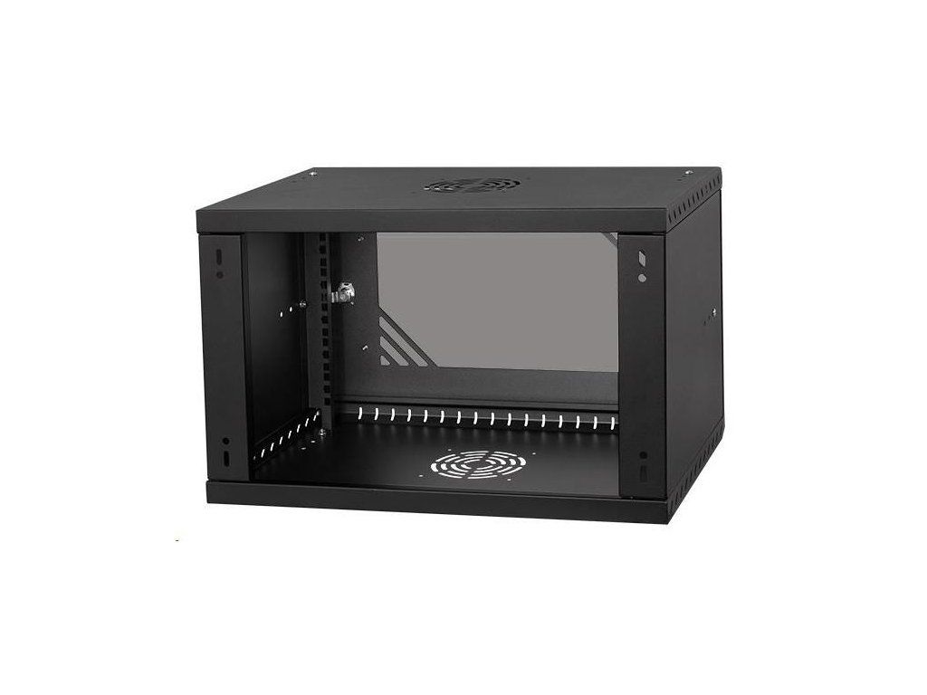 LEXI-Net 19" nástěnný rozvaděč Basic 6U 520x350, skleněné dveře, bez zad, rozložený, černý