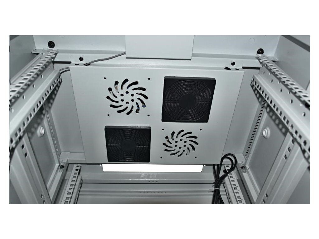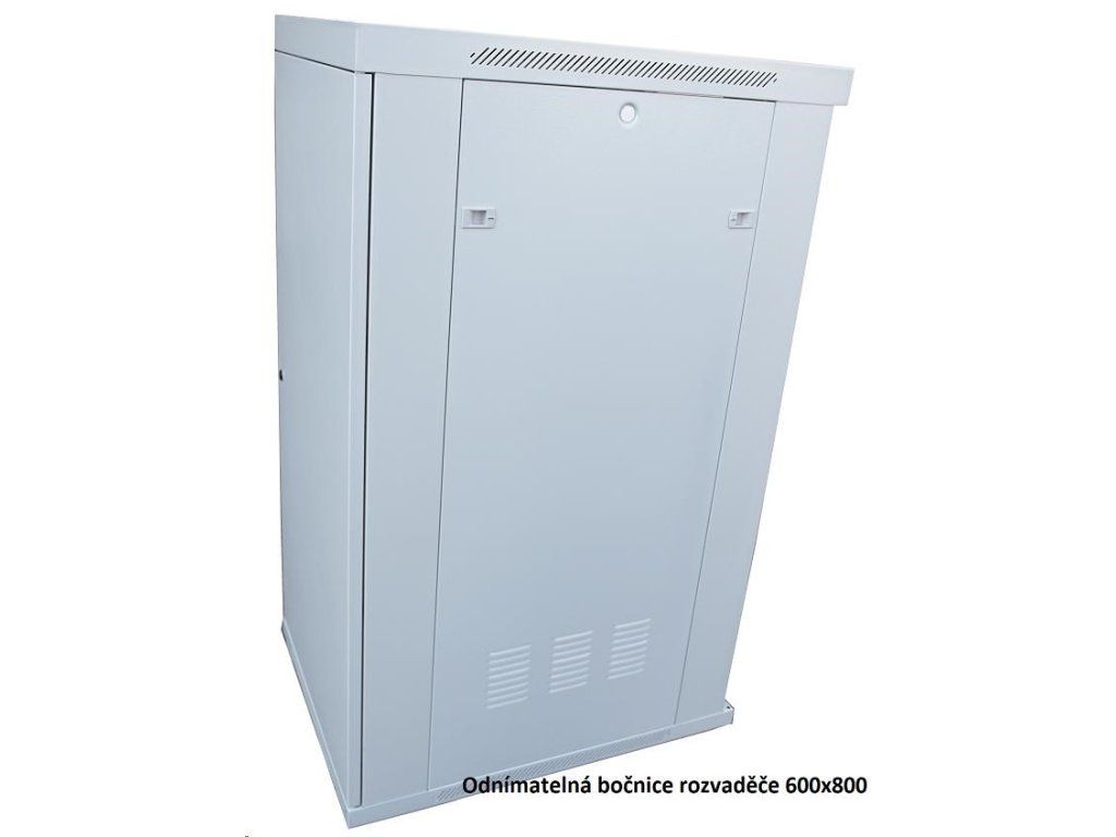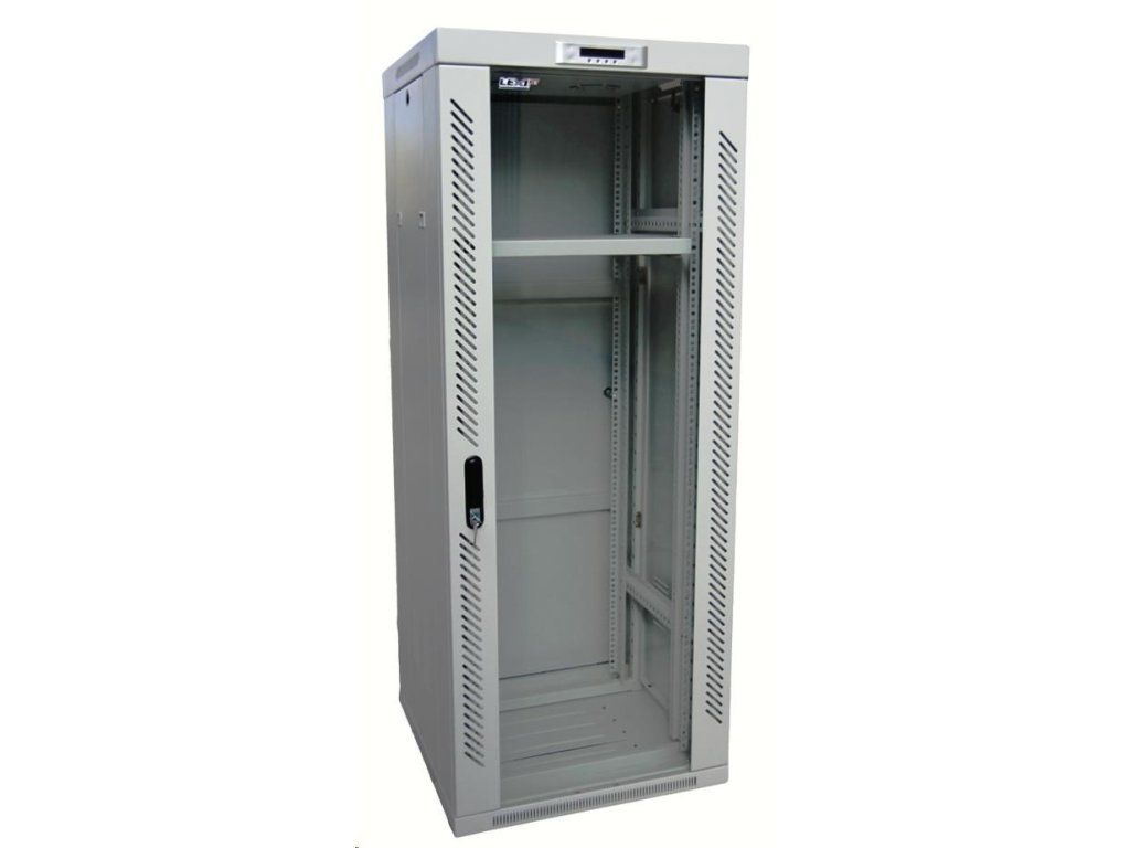 LEXI-Net 19" stojanový rozvaděč 18U 600x600 rozebiratelný, ventilační jednotka, termostat, kolečka, 600kg, sklo, šedý