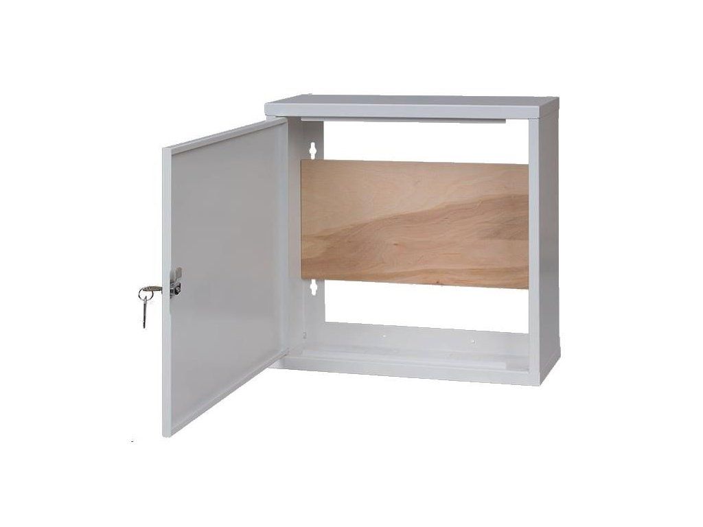 Lexi-Net Basic univerzálna skrinka 400 x 400 x 140 mm, biela Univerzálna uzamykateľná skrinka, povrchová montáž rozmer 400x400x140mm materiál oceľ 0,8mm s práškovou farbou - biela Montážna doska - preglejka 390 x 190 x 8mm Rozmery balenia 410x405x145 hmotnosť netto / s obalom 3,6kg / 3,82kg Krytie IP20.