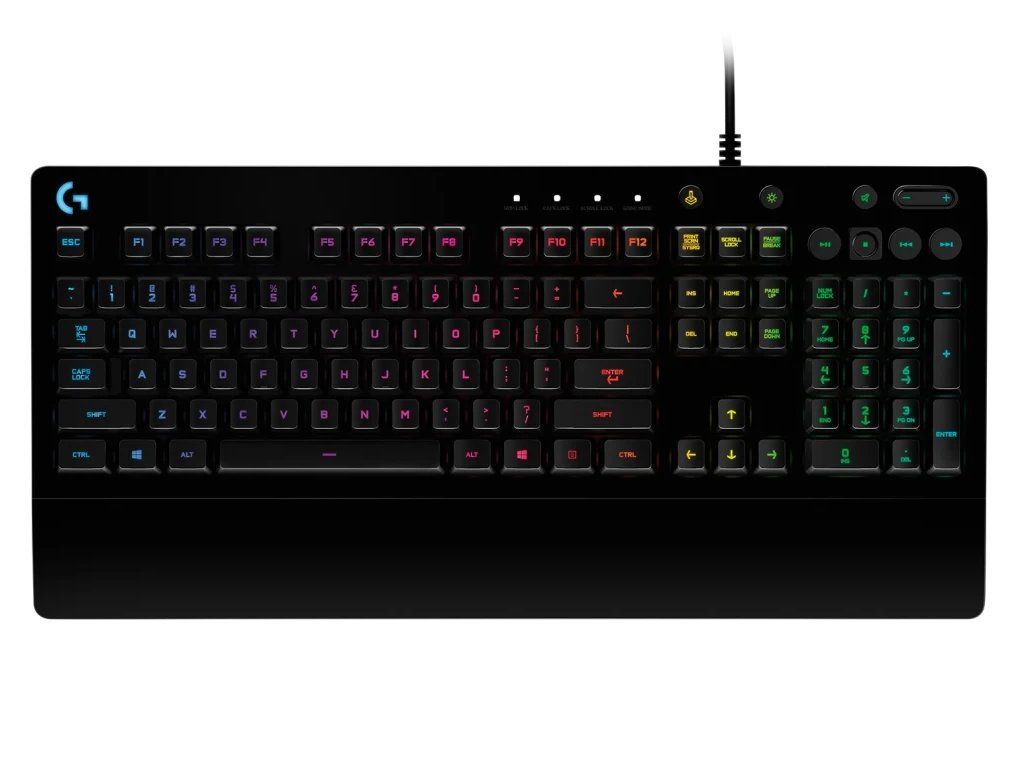 Herní klávesnice Logitech G213 Prodigy VÝKONNOST URČENÁ PRO HRY Herní klávesnice G213 disponuje klávesami Logitech Mech-Dome, které jsou speciálně přizpůsobeny k tomu, aby zajišťovaly dokonalou odezvu na dotyk a výkonnostní profil srovnatelný s mechanickou klávesnicí. Klávesy Mech-Dome mají standardní výšku, aktivační dráhu 4 mm, aktivační sílu 50 g a tichý chod. TECHNOLOGIE LIGHTSYNC RGB Klávesnice G213 je vybavena pěti individuálními zónami podsvícení, každá přizpůsobitelná z palety přibližně 16,8 milionu barev a různých úrovní jasu pro sladění s vaším stylem, systémem či prostředím. Technologie LIGHTSYNC zajišťuje podsvícení RGB nové generace, které synchronizuje podsvícení a herní profily s vaším obsahem. Vše si můžete snadno a rychle přizpůsobit pomocí Logitech G HUB. ODOLNÁ PROTI POLITÍ S DLOUHOU ŽIVOTNOSTÍ Konstrukční design membrány a rámu klávesnice G213 je stvořen pro reálný život – odolnost proti polití testována až do 60 ml. Výsledkem je klávesnice, která se statečně popere se skutečnostmi každodenního hraní.
