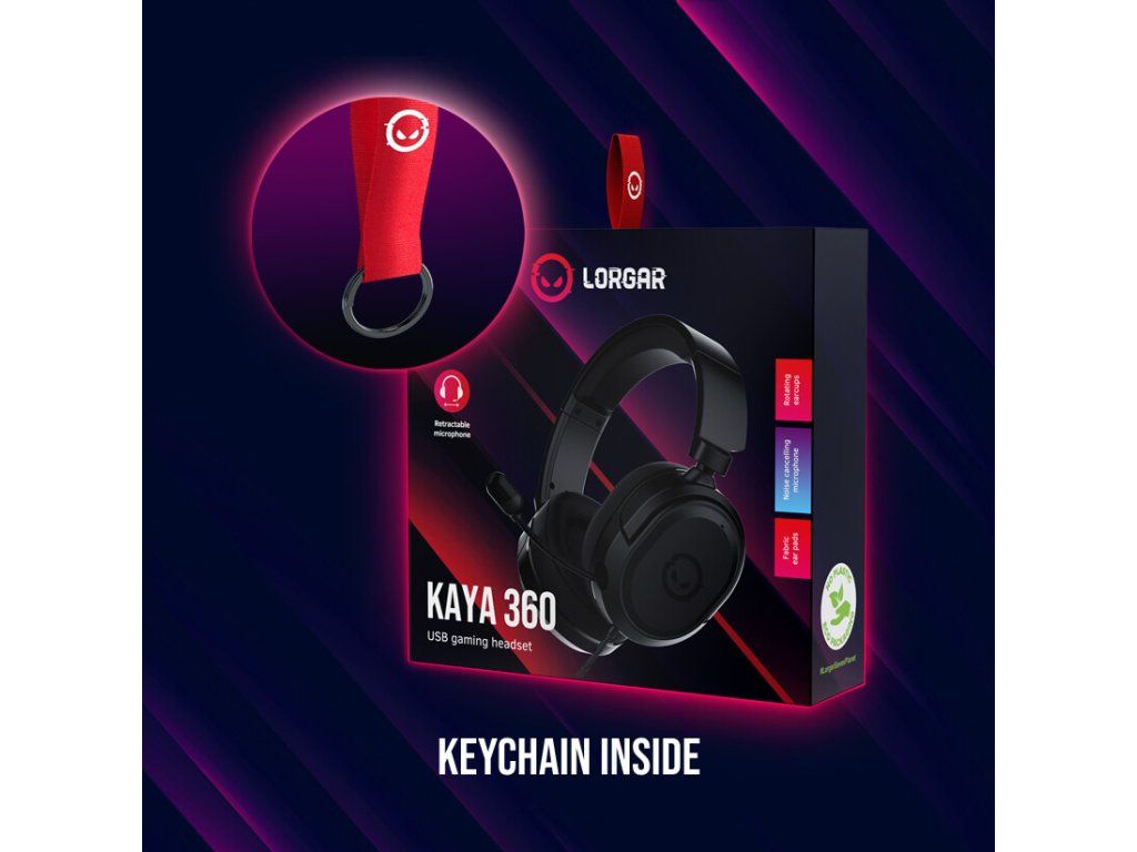 Lorgar Kaya 360, herný headset, virtual priestorový zvuk 7.1, USB-A, čierny