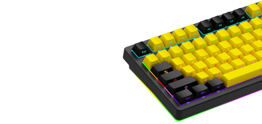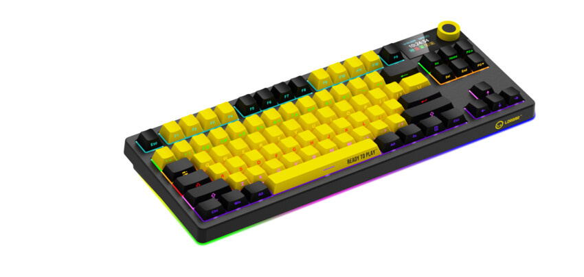 Popis Lorgar KBP70TKLW, Pro bezdrôtová mechanická herná klávesnica, 2.4 GHz/ BT 5.0, Displej, multim. tlač., US layout, žltá