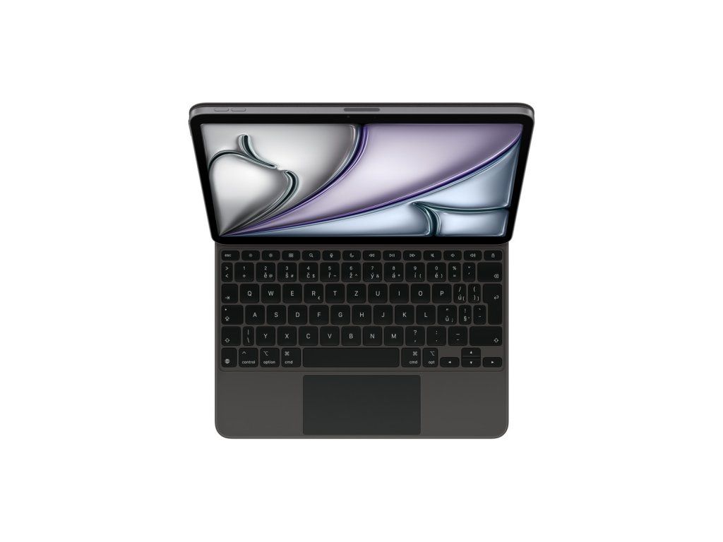 Magic Keyboard k 11palcovému iPadu Air (M3) – český Magic Keyboard je ideální doplněk k iPadu Air. Má elegantní a přenosný design a je na něm radost psát i používat trackpad na přesné ovládání. Nechybí mu řádek 14 funkčních kláves ani USB-C konektor na průchozí nabíjení. Navíc chrání iPad zepředu i zezadu. Plovoucí konzolová konstrukce se dá plynule přizpůsobit do různých pozorovacích úhlů a velký skleněný trackpad rozšiřuje možnosti práce s iPadOS. Je přenosný a díky konzolové konstrukci se dá hladce nastavit do takového úhlu, ve kterém se ti na obrazovku dívá nejlíp. Velký skleněný trackpad přispívá k citlivému a intuitivnímu ovládání. Řádek 14 funkčních kláves umožňuje pohotově ovládat jas, hlasitost a další funkce. , Klávesy mají nůžkový mechanismus s 1mm zdvihem, takže se na nich pohodlně píše. Navržený pro Multi-Touch gesta a kurzor v iPadOS. Má USB-C konektor na nabíjení iPadu Air, takže k volnému konektoru iPadu můžeš připojit další doplňky. V zavřeném stavu chrání iPad Air z obou stran. *Vyžaduje iPadOS 18.3 nebo novější.