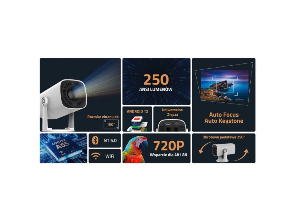 vlastnosti: Diaľkové ovládanie cez Bluetooth, podpora filmov 4K a 8K, prenosný,