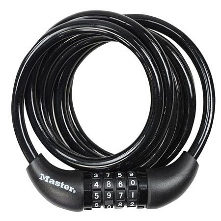 Pevný spirálový kombinovaný kabelový zámok je dlhý 1,8m a má priemer 8mm pre maximálnu pevnosť a pružnosť. Obsahuje integrovaný nastaviteľný 4-ciferný kombinovaný zámok. Jeho vinylový potah zabraňuje poškrabaniu. Vlastné navíjanie pre jednoduché uloženie.