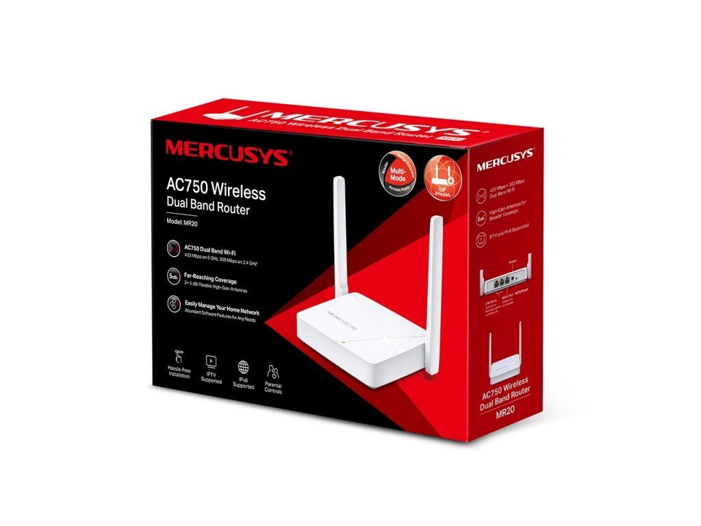 Mercusys MR20 AC750 Wifi Router Dual Band Wifi Router, 3x10/100 RJ45, 2x anténa