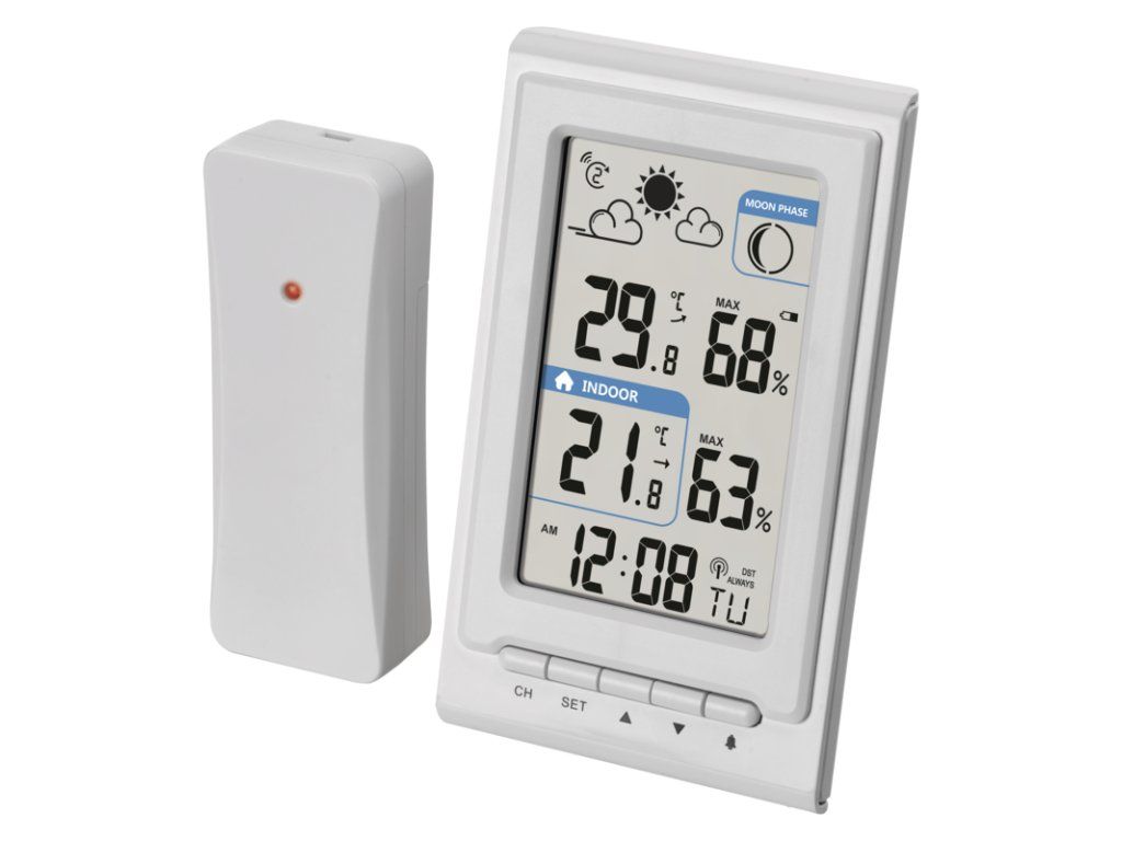 Popis produktu Díky této meteostanici budete vždy s jistotou vědět, na jaké počasí se připravit a nic vás nepřekvapí. Aktuální informace vždy k dispozici. Výhody produktu Možnost připojit až 3 bezdrátová čidla. Nejdůležitější parametry síťový adaptér ne možné další čidlo až 3 čidla (E05018) dosah čidla až 30 m barometr ne velikost displeje 50 × 81 mm projekce ne Ostatní parametry možnost pověšení na zeď ano drátová sonda k čidlu ne venkovní teplota -40 °C až +60 °C, rozlišení 0,1 °C venkovní vlhkost 20 % až 95 % RV, rozlišení 1 % předpověď počasí ano hodiny řízené DCF signálem min. a max. teplota ano trvalé podsvícení ne fáze měsíce ano datum ano trend tlaku ne napájení stanice 2× 1,5 V AAA (nejsou součástí balení) provedení bezdrátové kalendář ano vnitřní teplota -10 °C až +50 °C, rozlišení 0,1 °C srážkoměr ne trend teploty ano LED podsvícení displeje ne korekce nadmořské výšky ne barevný displej (black mask) podsvícený ne 12/24 formát času ano napájení čidla 2× 1,5 V AA (nejsou součástí balení) budík ano vnitřní vlhkost 1 % až 99 % RV, rozlišení 1 % anemometr ne teplotní výstraha ne časová pásma ano produkt meteostanice elektronické plošné podsvícení ne opakované buzení ano možnost nastavení jednotky teploty °C/°F přenosová frekvence 433 MHz rozměr čidla 21 × 38 × 100 mm rozměr hlavní jednotky 23 × 76 × 126 mm prodejní obal 1 ks, krabička