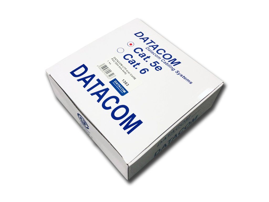 DATACOM UTP drát CAT5E PVC 50m box šedý Instalační kabel DATACOM určený pro rozvody strukturované kabeláže: * 4 x 2 x 0,5 z plné mědi * typ vodiče: drát * cat.5e * 24 AWG * 50 m návin * barva šedá * plášť: PVC Logistické parametry: * 240 x 240 x 80 mm * 1,6 kg