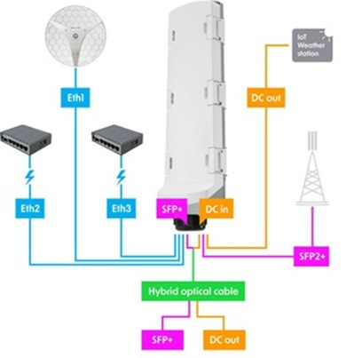 MikroTik venkovní PoE switch GPERx6 robustní venkovní switch pro přenos dat a napájení hybridním kabelem na velké vzdálenosti, který omezuje změť kabelů a zjednodušuje instalaci Zbavte se zbytečných kabelů – propojte napájení a optické kabely kamkoli – pomocí jediného hybridního kabelu, který kombinuje optická vlákna pro data a měděné vodiče pro napájení. Na druhém konci GPERx6 vše úhledně rozděluje: SFP+ porty pro vysokorychlostní uplinky dat, PoE výstupy pro napájení dalších switchů nebo přístupových bodů a DC výstupy pro IoT zařízení nebo specializovaný HW. Řešení pro náročné venkovní instalace, kde je potřeba rozdělit data a napájení z jednoho hybridního kabelu na více zařízení. Switch GPERx6 kombinuje 3 Gigabit Ethernet porty s PoE funkcionalitou, 3 vysokorychlostní 10G SFP+ porty pro optické spoje a 3 DC výstupy pro napájení IoT zařízení nebo specializovaných přístrojů. Ideální pro zabezpečení rozlehlých areálů, průmyslové parky, vzdálené CCTV věže, bezpečnostní systémy nebo solární instalace na vzdálených místech. *3 Gigabit Ethernet porty s PoE-in (port 1) a PoE-out (porty 2 a 3) až 57 V *3 10G SFP+ porty pro vysokorychlostní optické spoje na dlouhé vzdálenosti (1-2 km) *3 DC výstupy (DC1–DC3) s celkovým výkonem až 3,6 A pro IoT zařízení *odolné IP66 krytí - robustní konstrukce krytu odolá extrémním povětrnostním podmínkám včetně mrazu, horka, větru a deště *dvojí napájení přes DC jack (12–57 V) nebo PoE-in (42–57 V) s 802.3bt podporou *dedikovaný 10G switch čip 88E6193X testovaný v ISP zařízeních *operační systém SwOS pro jednoduchou konfiguraci a správu *maximální spotřeba 160 W (6 W bez připojených zařízení)