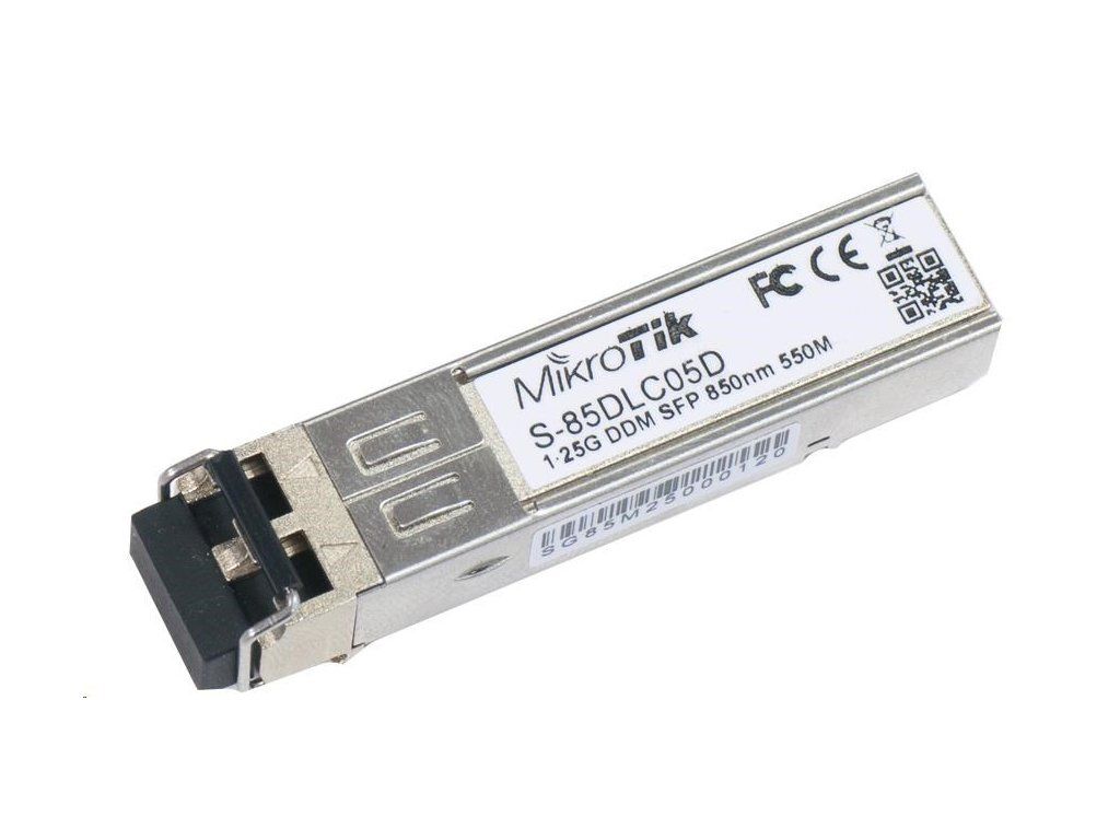 Mikrotik S-85DLC05D je 1.25G vysielač SFP s 850 nm, dvojitý LC konektor. Je určený pre viacmodové vlákna (MM). do 550 m (s DDM).