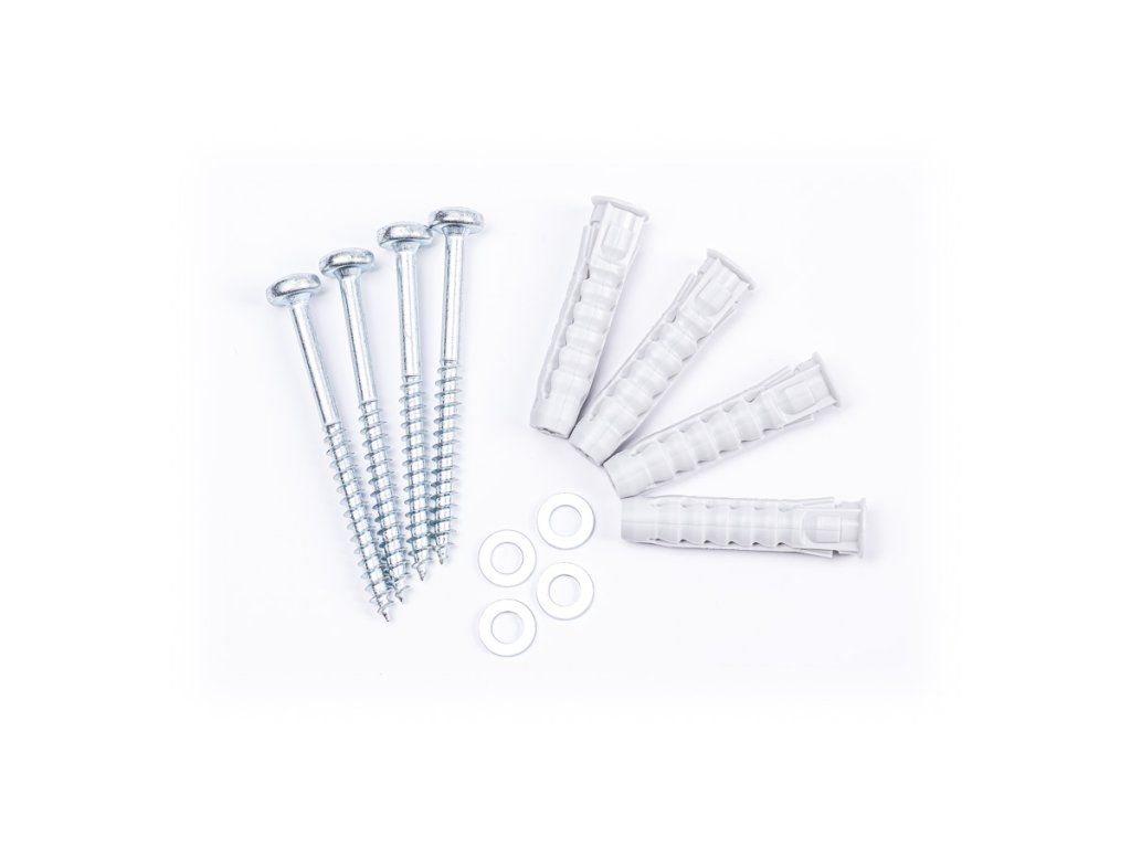 Montážní set pro projekční plátna Balení obsahuje: 4 ks vrut 6,0 x 70 4 ks hmoždinka UX 10 x 60 4 ks podložka Montážní materiál je určen do tuhého zdivaDodatočné parametre