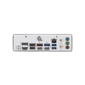 Porty na zadním panelu: * 2x USB 3.2 Gen 2 10Gb/s (typ C) * 3x USB 3.2 Gen 2 10Gb/s (typ A) * 3x USB 3.2 Gen 1 5Gb/s (typ A) * 1x HDMI™ * 1x DisplayPort 1.4 * 1x RJ-45 5G LAN * 1x Wi-Fi/Bluetooth * 3x audio konektor * tlačítko Flash BIOS * tlačítko Clear CMOS