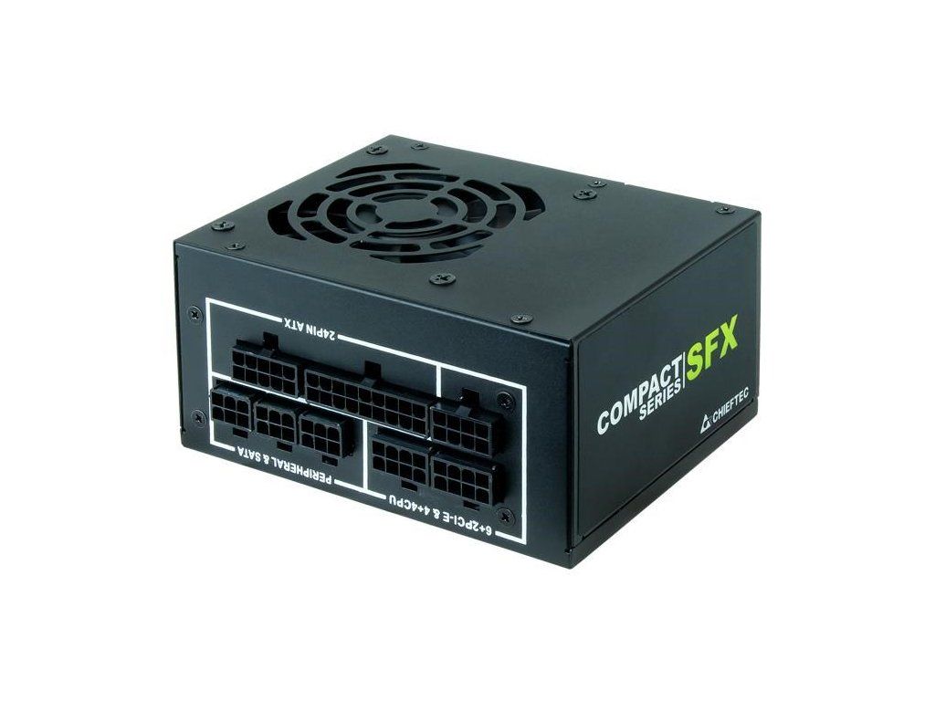 Formát zdroja:SFX; Konektory:8pin CPU 1x, PCIe 6-pin, PCIe 8-pin, SATA 15-pin, Molex, FDD; Konektory pre základnú dosku:ATX 20-pin, ATX 24-pin, EPS 8-pin