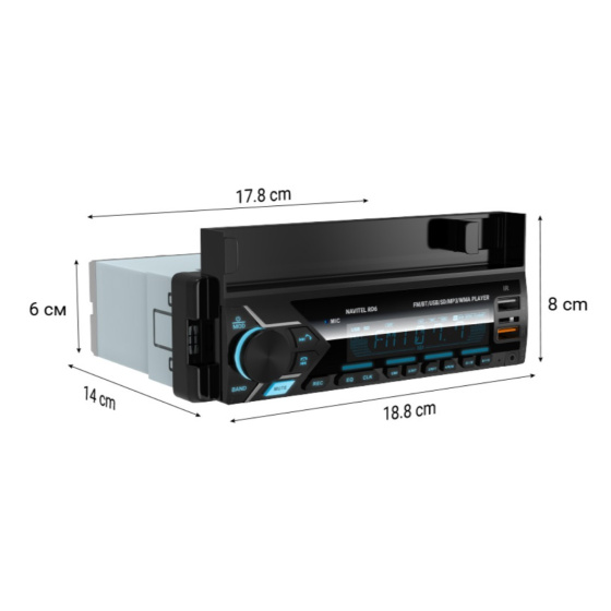 Moderní 1DIN autorádio Autorádio NAVITEL RD6 je vybaveno FM modulem, který si dokáže zapamatovat až 18 oblíbených rádiových stanic. Přístroj dále nabízí AUX-in a Bluetooth, které umožňují nejen poslouchat hudbu, ale i telefonovat a ovládat autorádio prostřednictvím mobilní aplikace. Zařízení je vybaveno držákem na váš chytrý telefon a RCA výstupy pro externí zesilovač a vícekanálový audio systém auta. Bluetooth & hands-free Poslouchejte svou oblíbenou hudbu a telefonujte během řízení, aniž byste se nechali rozptylovat. NAVITEL RD6 disponuje moderním Bluetooth modulem, který podporuje různé protokoly, a zajišťuje tak výtečné připojení k chytrému telefonu při přehrávání zvuku, stejně jako přístup ke kontaktům a seznamu hovorů. Pro co největší pohodlí doporučujeme umístit váš telefon do speciálního držáku na vrchu autorádia. Poslouchejte & nabíjejte NAVITEL RD6 podporuje MP3, WMA a FLAC zvukové formáty, díky čemuž zařízení poskytuje maximální kompatibilitu a pohodlí. Přední panel rádia disponuje AUX-in pro zařízení s 3,5mm jack konektorem a slotem na microSD kartu s kapacitou až 256 GB. Navíc má dva USB porty, přičemž horní je kompatibilní s flash disky s pamětí až 256 GB, zatímco dolní je určen pro nabíjení mobilních zařízení.