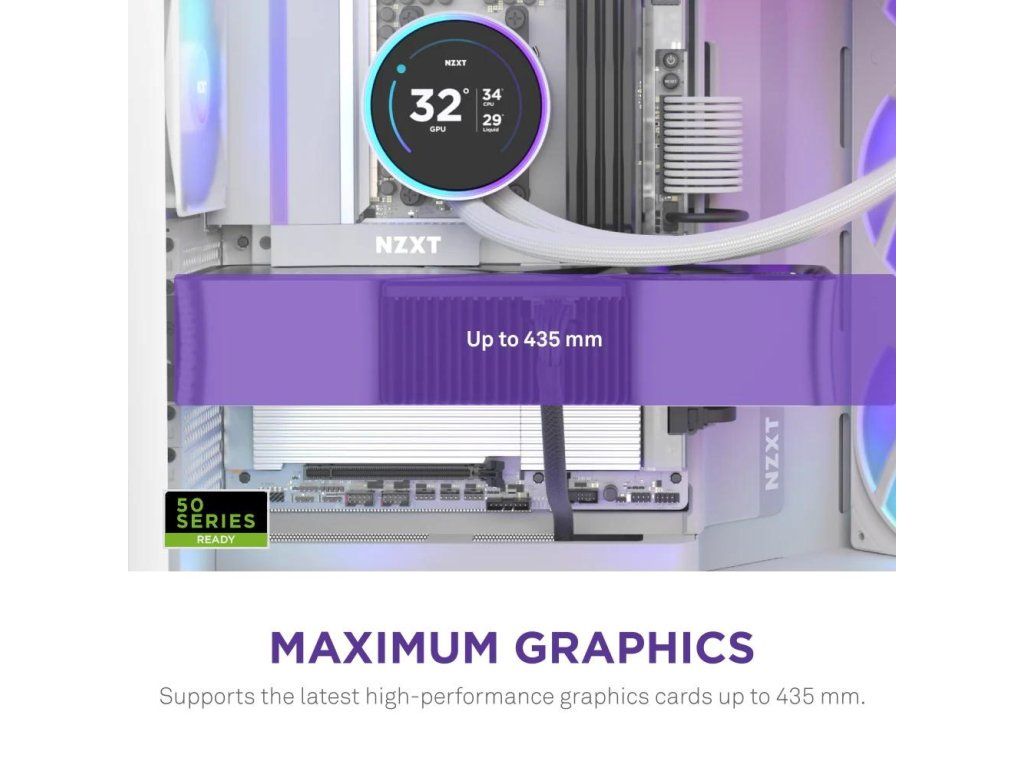 • Veľké chladiče a GPU: Vmestí sa do neho až 420mm radiátor na hornom a pravom prednom paneli a má dostatok miesta pre špičkové grafické karty.