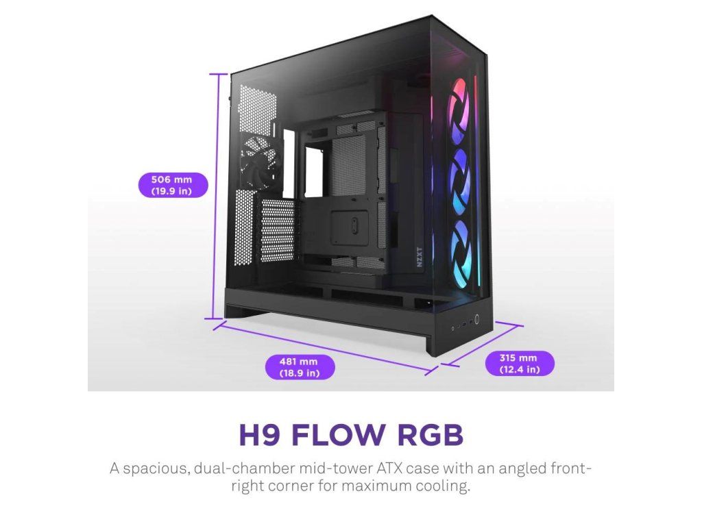 NZXT skříň H9 Flow RGB dvoukomorová ATX / 1x140 RGB mm / 1x 120mm RGB fan / prosklená / černá