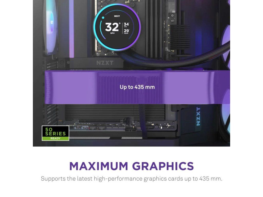 • Podporuje tri spodné 120mm ventilátory pre priame chladenie GPU pri zachovaní úzkych rozmerov skrine typu mid-tower.