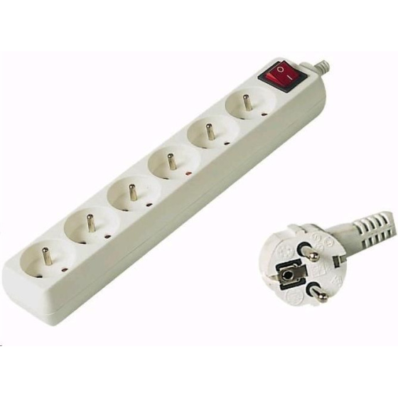 Popis PREMIUMCORD Predlžovací kábel 230V 5m, 6 zásuviek + vypínač, biely