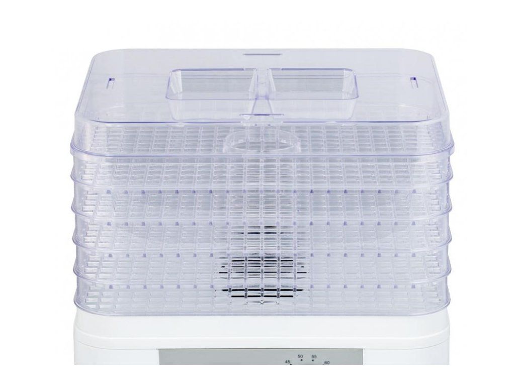 Sušička potravín s piatimi nastaviteľnými mriežkami, vysokoúčinný ohrievač a ventilátor zabezpečujú dôkladnú cirkuláciu vzduchu pre rýchle a efektívne sušenie, jednoduché ovládanie pomocou otočného ovládača teploty, rozsah nastaviteľnej teploty od 35 ° C do 70 ° C, bezpečnostná poistka, napájanie 230V ~ 50Hz, 230W, šírka: 320 mm, výška: 270 mm, hĺbka: 255 mmPopis produktu bol preložený pomocou umelej inteligencie a môže obsahovať nepresnosti.