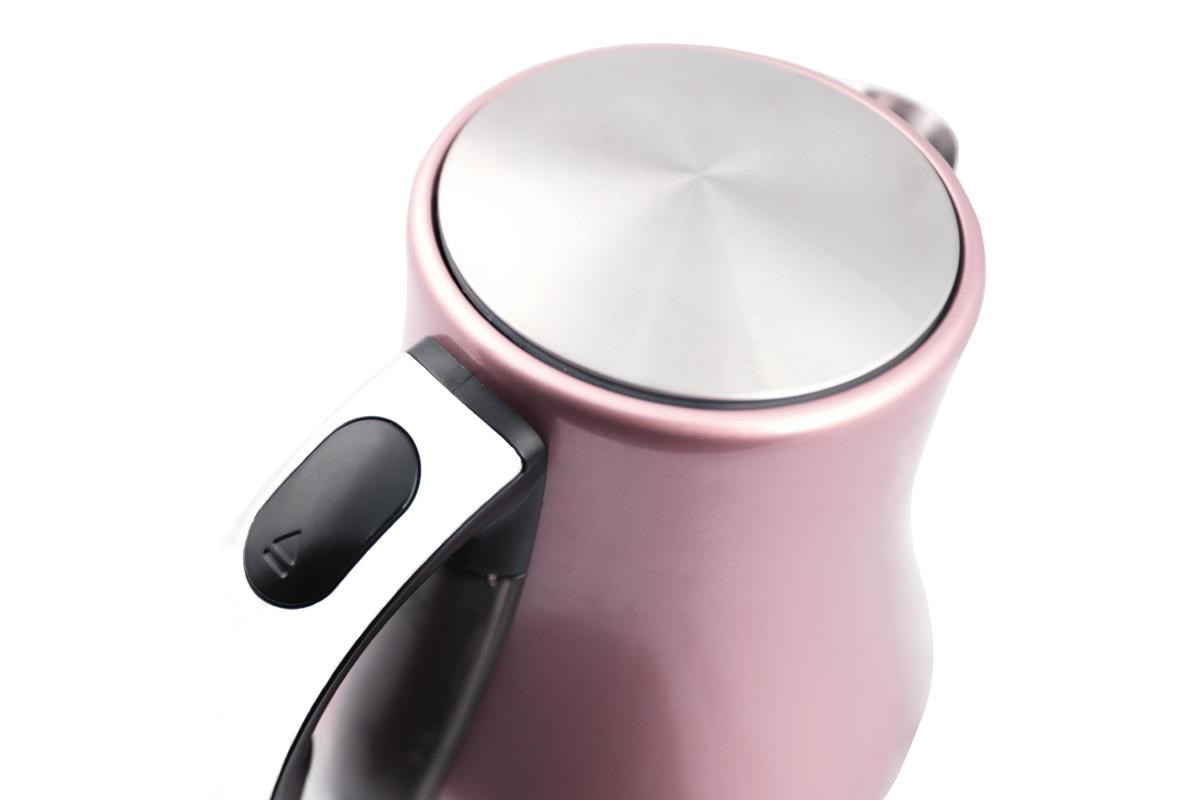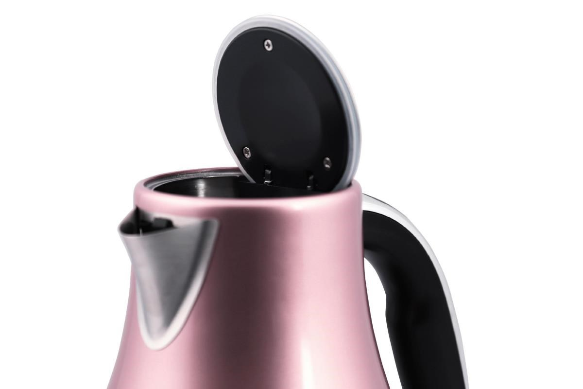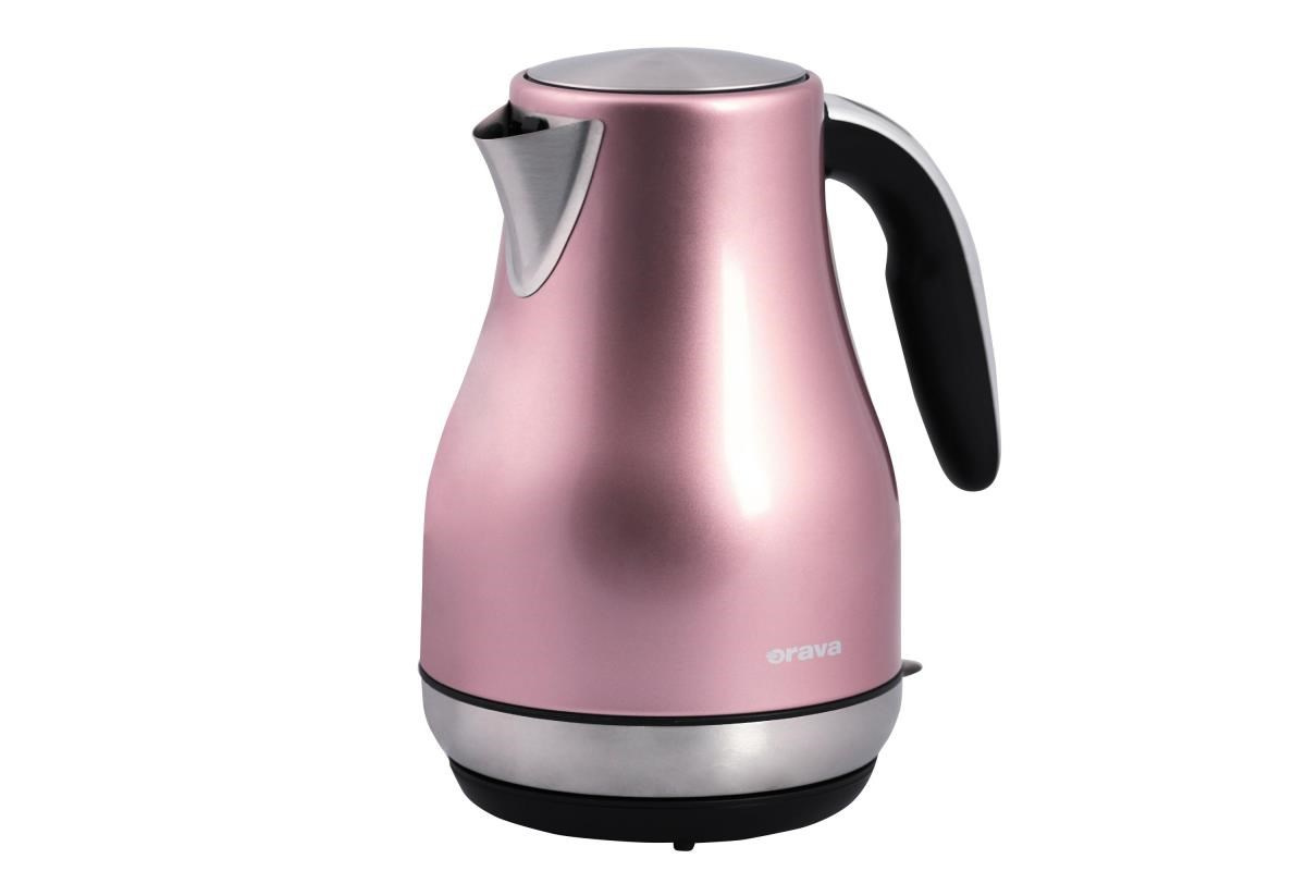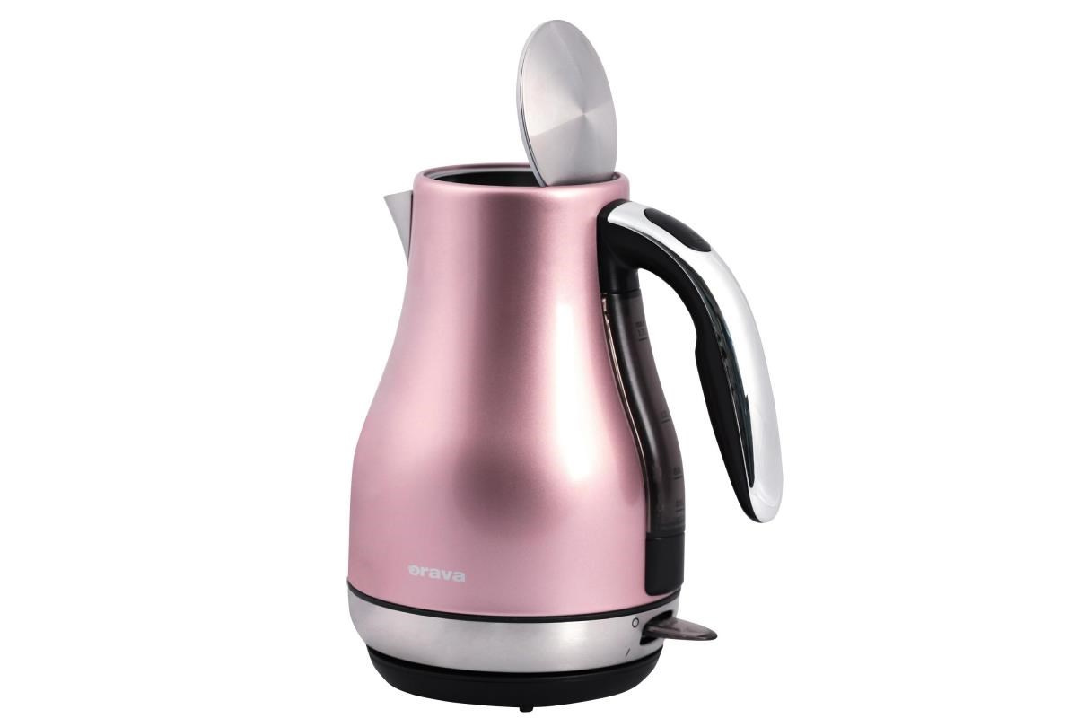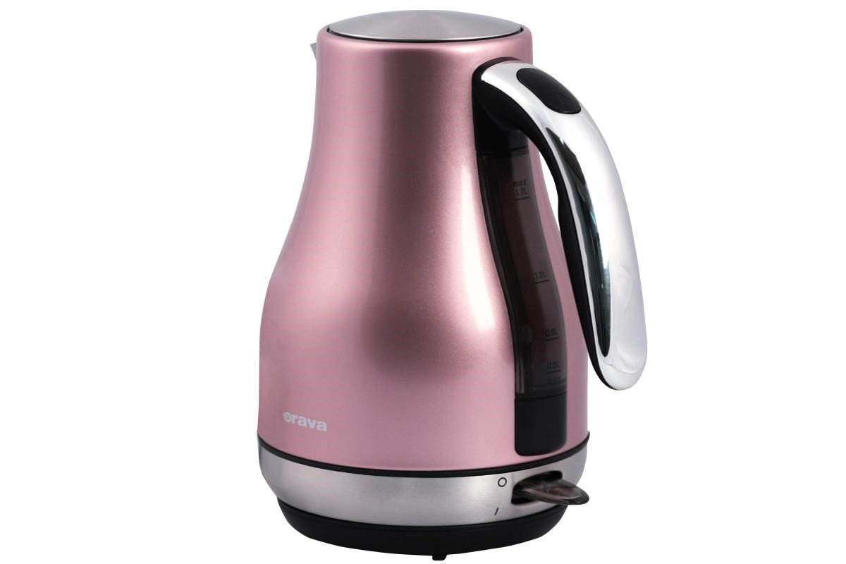 Rýchlovarná kanvica Orava VK-3715 v ružovej farbe . Kanvica je nerezová s objemom 1,7 litra. Veľkou výhodou je, že voda uzavretá v nerezovej kanvici je bez zápachu.