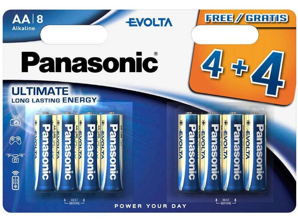PANASONIC Alkalické baterie Evolta Platinum LR6EGE/8BW 4+4F AA 1,5V (Blistr 8ks)
