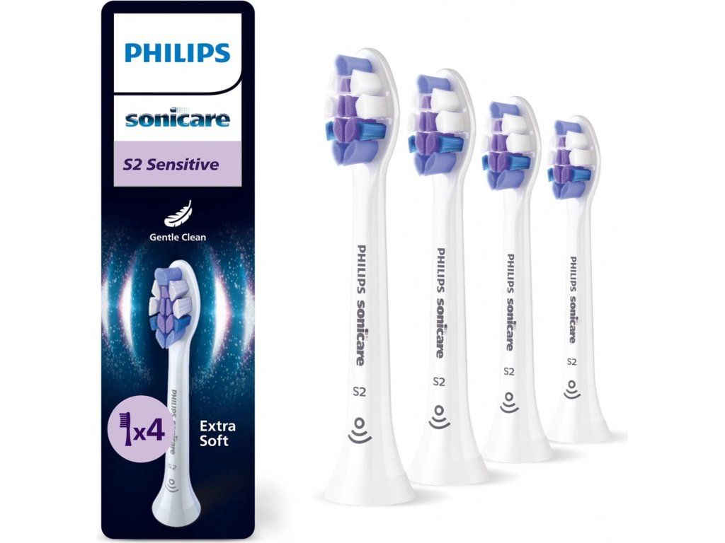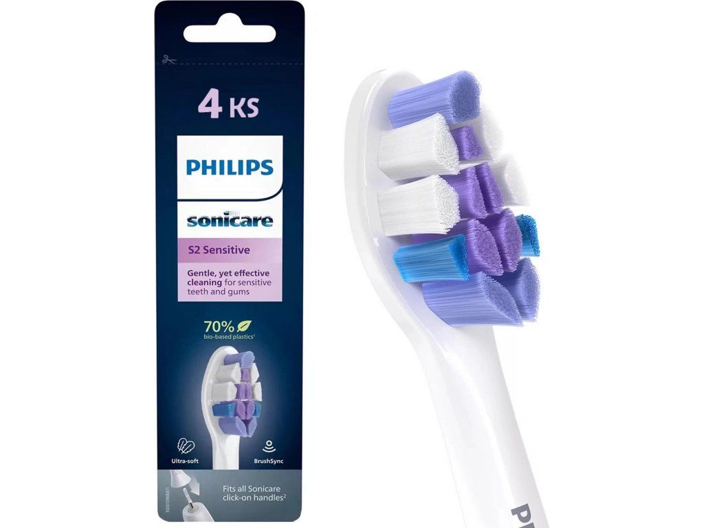 Philips HX6054, 87 Sonicare Sensitive S2 4 ks, náhradní hlavice, standardní hlavice, nasazovací, bílá