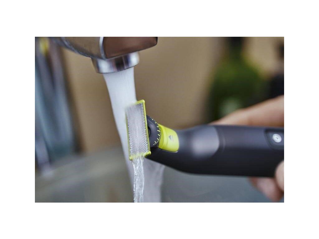 OneBlade využíva technológiu rýchlo sa pohybujúceho ostňa, 12 000 pohybov za minútu je účinné aj na dlhších fúzoch, a to bez nepríjemného ťahania alebo podráždenia. Inovatívny odolný brit z nerezovej ocele OneBlade 360 vyniká dlhou životnosťou, je obojstranný a holí v akomkoľvek smere. So systémom dvojitej ochrany, ktorú tvorí špeciálna povrchová úprava pre lepšie klznosť po tvári a zaoblené špičky pre väčšiu bezpečnosť, je holenie jednoduchšie a pohodlnejšie. Správnu dobu výmeny poznáte podľa toho, že sa na ňom objaví symbol vysunutia.