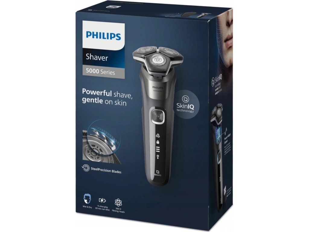Philips Series 5000 Wet & Dry S5887/30 pánský elektrický holicí strojek, šedý, SkinIQ, 360° otočné hlavy,Power Adapt