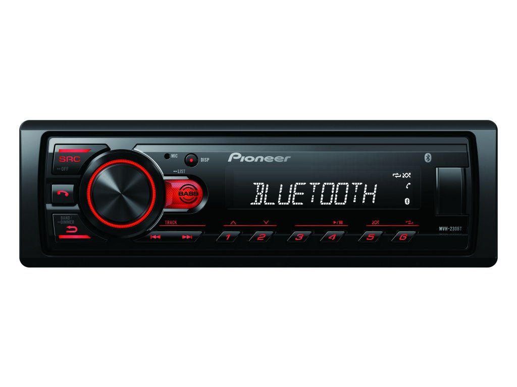 Pioneer MVH-230 autorádio s USB a Bluetooth s integrovaným mikrofónom červené