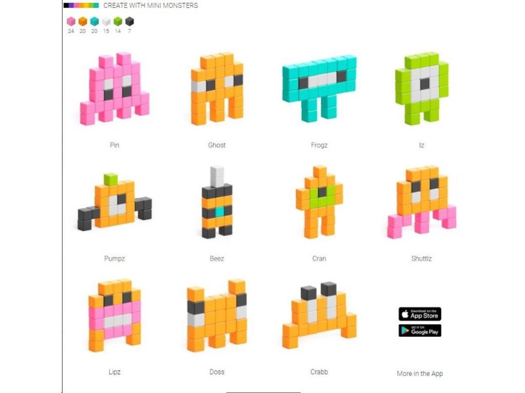 • Řada PIXIO Mini Monsters obsahuje 100 bloků PIXIO v 6 barvách. Umožní oživit vaše kreativní