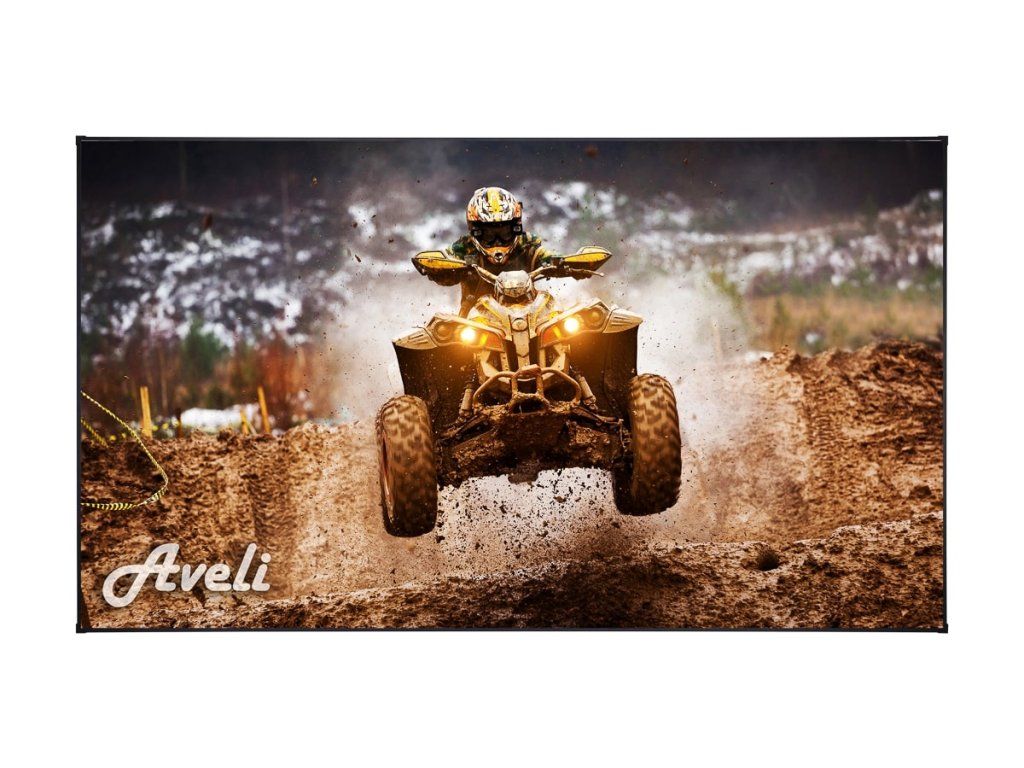 Projekční plátno AVELI PREMIUM v pevném rámu, vhodné pro přímou projekci. Vhodné pro projektory se světelným výkonem 4000 ANSI a vyšší. Využití plátna je univerzální. Díky speciálnímu šedému povrchu vynikají všechny barvy. Testováno na lampových a laserových projektorech! - Poměr stran 16:9 - Úhlopříčka 100''