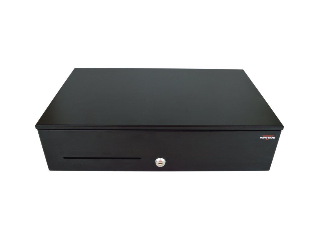Základní parametry * Konstrukčně podobné Flip top zásuvkám, zde s předním otvíráním * Stejný pořadač s Flip top zásuvkami * Vyjímatelný pořadač na bankovky (nastavitelný) a mince * Otvírání zásuvky lze provádět mechanicky klíčkem nebo elektronicky * Vkládání bankovek a šeků bez otevření zásuvky - přední štěrbinou * Elektronická kontrola zavření zásuvky * Mechanicky odolná konstrukce * Čisté a přesné mechanické zpracování * Univerzální připojení libovolných pokladních systémů pomocí konektoru RJ50-10p10c výběrem příslušného externího kabelu * Zámky dodávány s ,dvěma klíči *Součástí kabel RJ12 24V pro připojení k pokladní tiskárně (EKA0518)