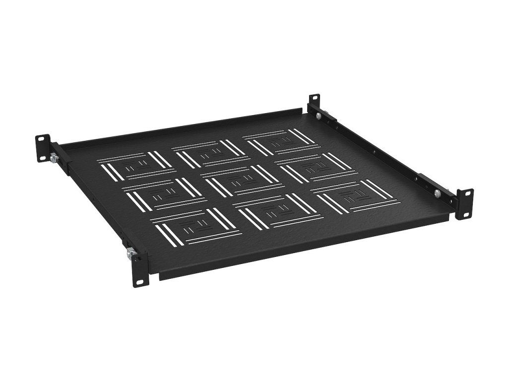 černá police 19'' 1U 450mm pevná * police s čtyřbodovým uchycením * určená k uložení zařízení do 19'' rozvaděče, používá se tedy především tam, kde tato zařízení nelze uchytit do 19'' rámu * perforované dno police zajišťuje snadný průchod vzduchu * povrchová úprava je provedena práškovou technologií v černé barvě RAL 9005