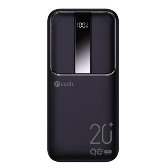 C-TECH Powerbanka 20000mAh, Li-Pol, 22,5W, USB-C/USB-A/micro USB/PD/Quick charge/display
