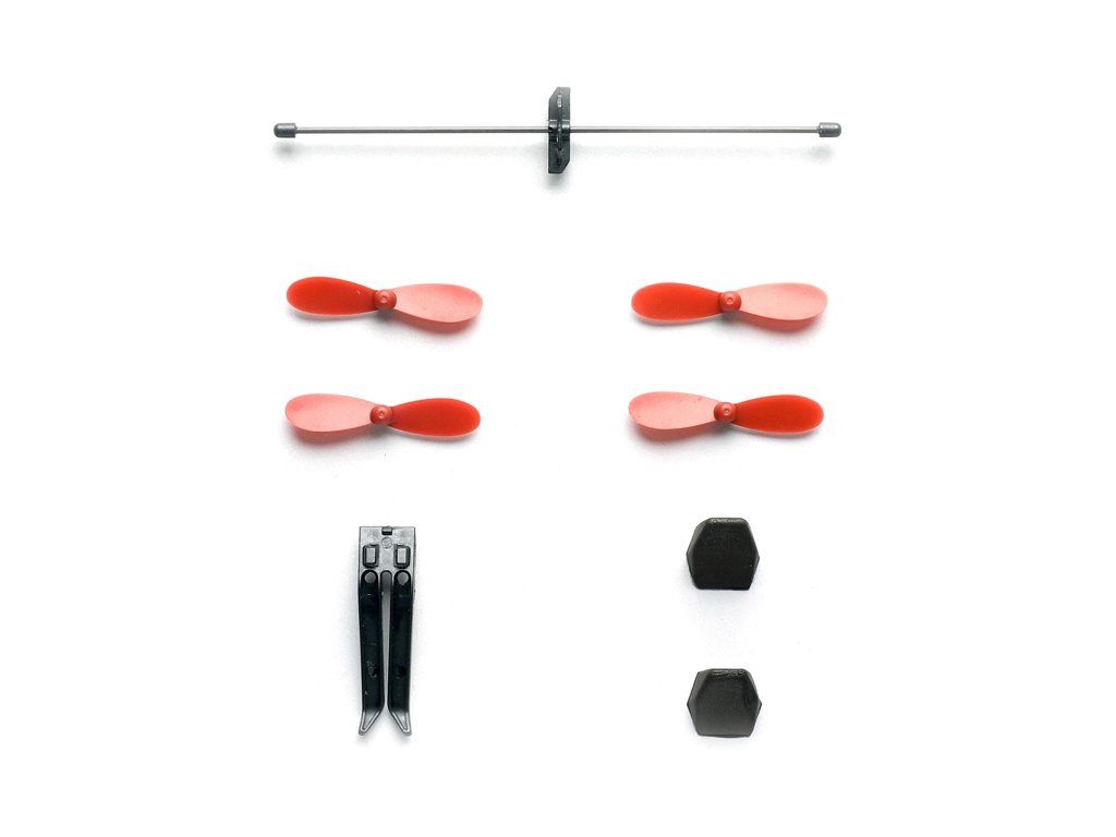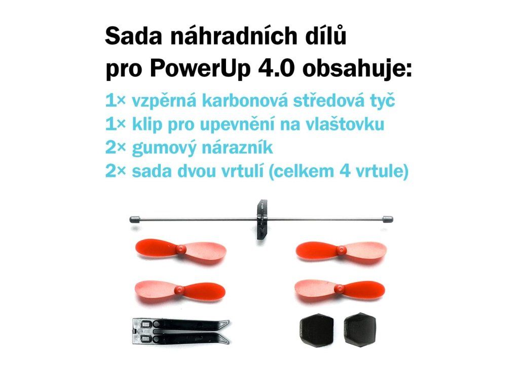Aby lietadlo správne reagovalo na pokyny z aplikácie, musí mať pevnú a stabilnú konštrukciu. Pri skutočne divokých manévroch môže dôjsť k poškodeniu alebo strate vzpernej stredovej tyče. Aj na to tento kit myslí a obsahuje jeden náhradný kus karbónovej vzpery. Celkovo tak v balení dostávate: 2× gumový nárazník, 2× sadu vrtúľ (4 kusy celkom), 1× upínací klip a 1× stredovú tyč. Nič ďalšie na bežnú údržbu v teréne nepotrebujete.