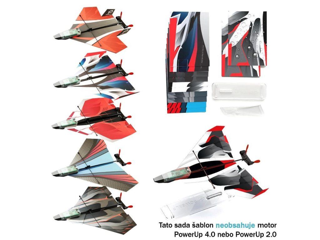 S originálnou doplnkovou sadou šablón pre motory PowerUp 4.0 a PowerUp 2.0 získate celú letku nových stíhačiek a s nimi aj rad návodov na výrobu pokročilých modelov.