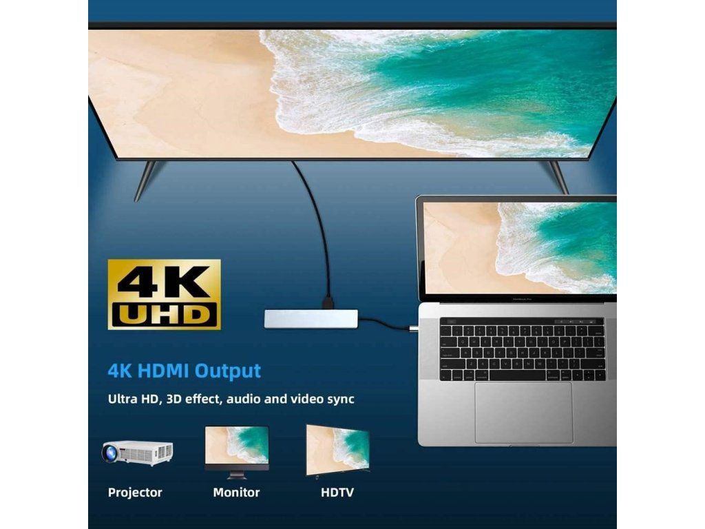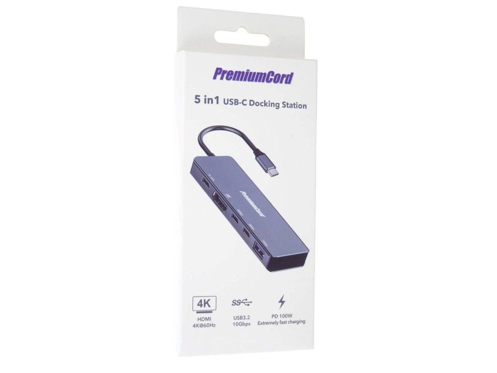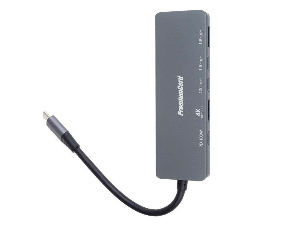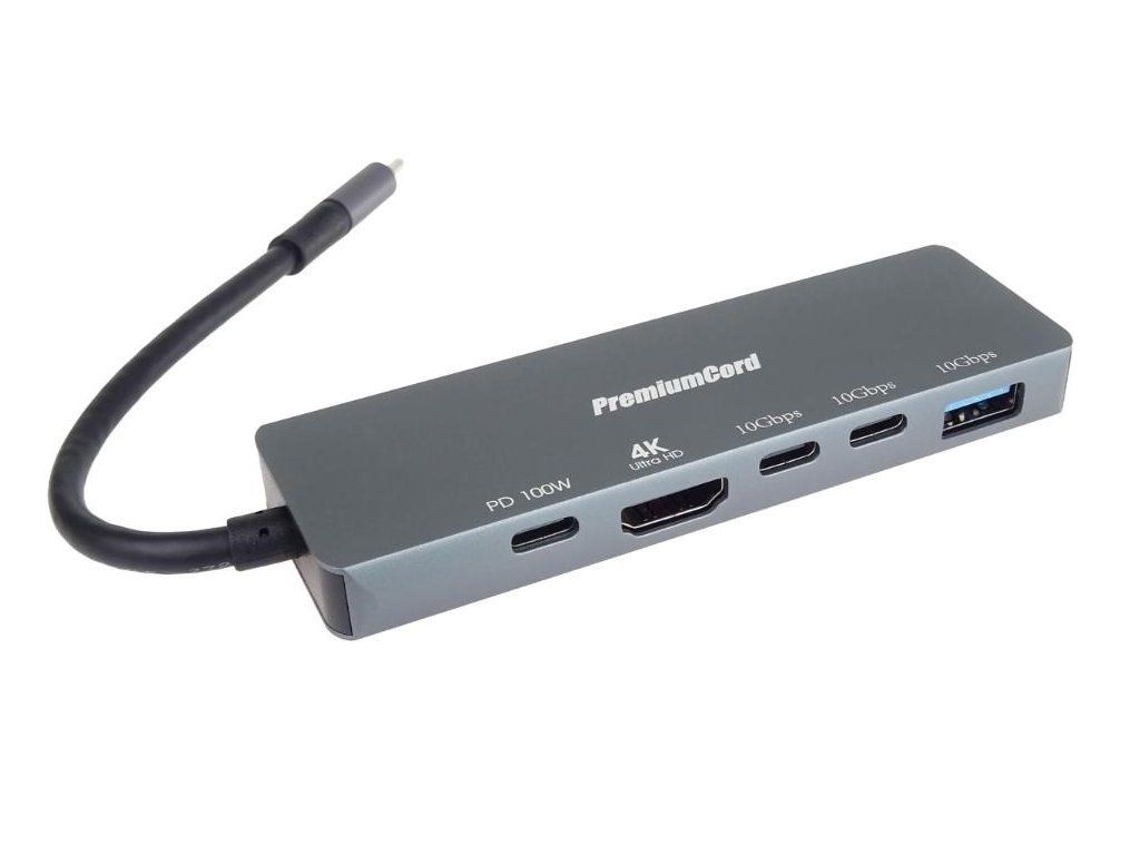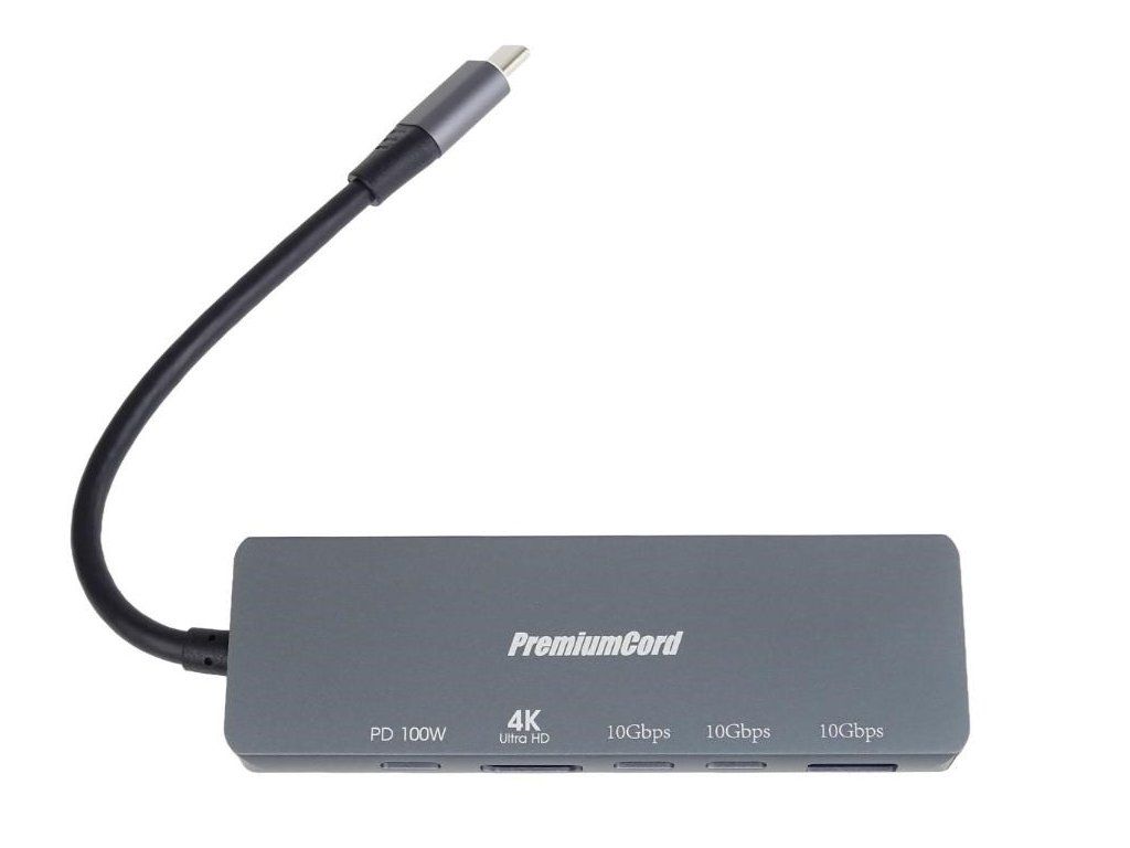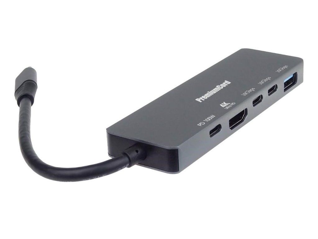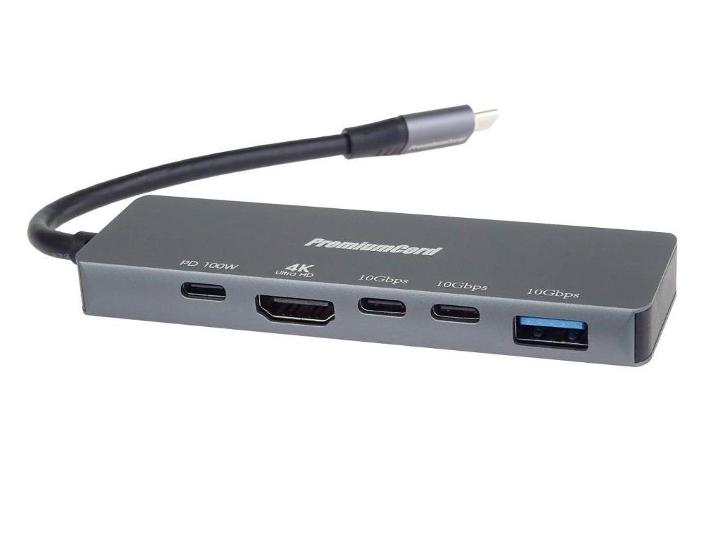 PremiumCord Adaptér USB-C na 4K@60Hz HDMI + 10G USB3.2 A + 10G 2x USB-C + PD