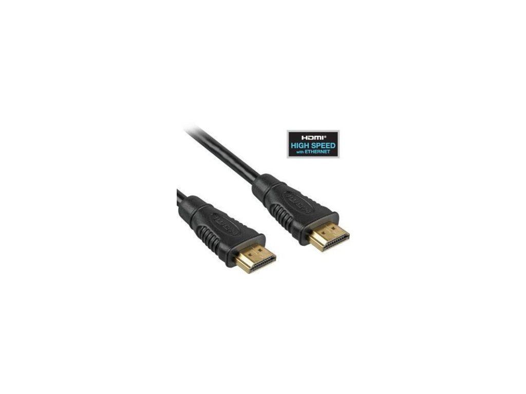 Kvalitní propojovací kabel pro spojení dvou audio/video zařízení přes moderní HDMI rozhraní, jako je např. HD-DVD/BluRay přehrávač a LCD/Plazma televizor. Kabel je stíněný, dokáže přenášet digitální zvuk i obraz a podporuje digitání ochranu obsahu HDCP. Kabel má navíc integrován vysokorychlostní přenos ethernetu. - Pozlacené konektory: HDMI typ A (19pinů) male <=> HDMI typ A (19pinů) male - Délka kabelu: 2 m - Rozlišení: Až 4096 x 2160 bodů nebo nižší podporované formáty 1080p FULL HD/1080i/720p/720i - Podporuje : HDMI 1.4 a nižší - Podporuje: 4K, Deep Color, 3D, xvYCC (xvColor), auto lip-sync, ARC, CEC, HDCP, Dolby TrueHD, HEC - Přenosová rychlost 10,2 Gb/s - Šířka pásma 340MHz - 3D video po HDMI připojení - Barevná hloubka: 24-bit (16.7 million barev). - Třívrstvé, vysoce kvalitní stínění - Zpětný audio kanál pro poslání signálu z tuneru TV zpět do domácího kina/surround systému - Přenos počítačové sítě (ethernetu) po HDMI kabelu - 19žilový kabel, dvojitě stíněný, AWG30 - barva černá