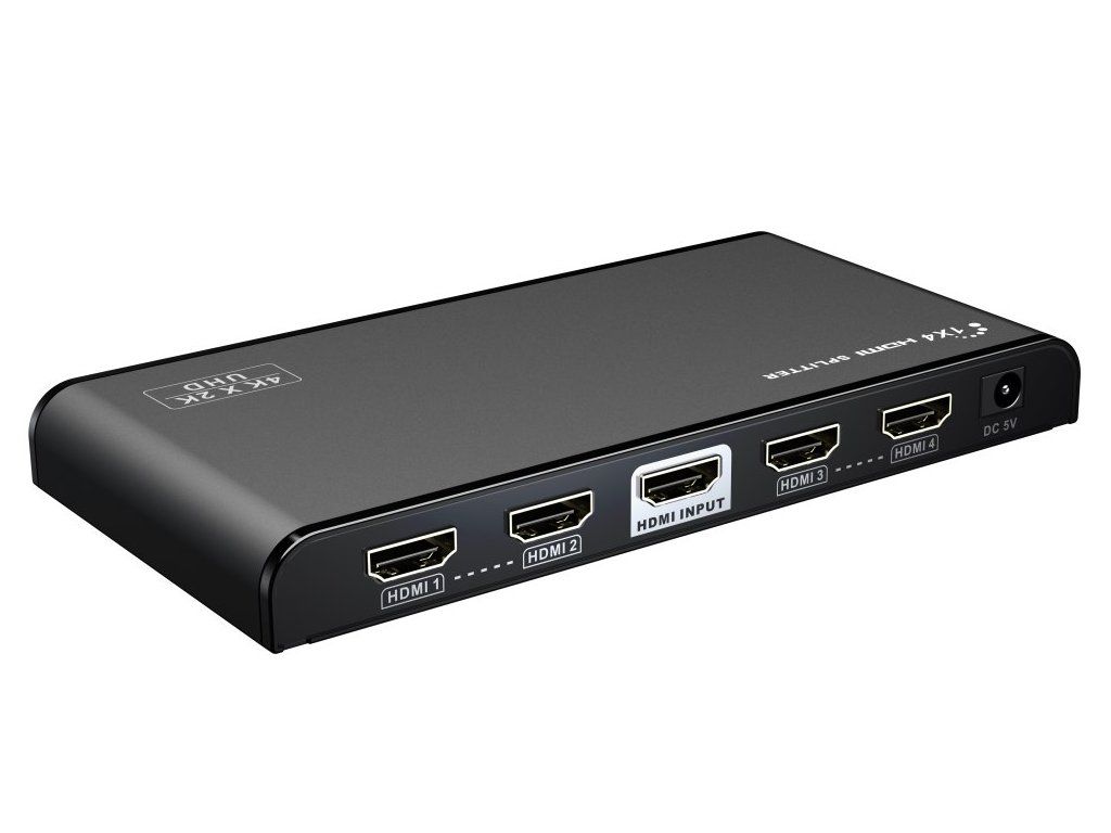 PremiumCord HDMI 2.0 splitter 1-4 porty, 4K x 2K/60Hz, FULL HD, 3D Můžete připojit několik HDMI obrazovek k jednomu HDMI zdroji signálu jako je PC, notebook, DVD, set top box, atd. - Vstup: 1 x HDMI socket (Type A) - Výstup: 4 x HDMI socket (Type A) - Napájení pomocí 230V/2A adaptéru - Na čelním panelu 1xLED indikace napájení, 4xLED indikace signálů na portech - Podporuje 3D a HDTV až do Ultra HD 3840X2160/60HZ - Rozlišení: 480i, 480p, 720i, 720p, 1080i ,1080p, 4K x 2K/60Hz - Podporuje standard HDMI 2.0 , HDMI1.4 - Podporuje HDCP2.2 - Splitter obsahuje aktivní zesilovač signálu, který umožňuje zapojit za splitter kabely až do délky 8m. Kabely musí mít kvalitní měděné vodiče a dostatečný průřez vodičů vzhledem k délce kabelu a použitému rozlišení video signálu - Šířka pásma (MHz): 25MHz - 600 MHz - Max. datový přenos 6 Gb/s - Max. rozlišení: 4K*2K/60Hz (3840X2160/60Hz) - Podporuje standardy: Dolby Digital/Plus, Dolby TrueHD, DTS-HD Master Audio+, DVD-Audio, SA-CD other supported standards: 3D, HDCP 2.2 , CEC - Podporuje 8/10/12 bitovou hloubku barev - Přenáší obraz i zvuk - Pěkné malé kovové pouzdro černé barvy - Rozměry:158mm x 80mm x 17mm - Váha: 196g - Balení v papírové krabičce s EAN kódem Návod k zapojení: 1) Vstup HDMI splitteru zapojte HDMI kabelem do zdroje signálu a výstup zapojte do zobrazovací jednotky nebo monitoru. 2) Zapojte napájecí adapter do zásuvky 230V a do zdířky DC 5V. Pokud se obraz po zapojení rozbočovače nezobrazí ihned po zapojení, vyčkejte cca 30s než dojde k rozpoznání HDMI signálu.Dodatočné parametre