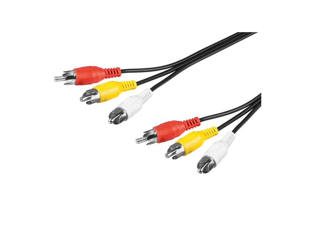 Kabel pro spojení dvou audio zařízení zvukovým signálem stereo kvality. Na obou stranách jsou 3 konektory RCA (cinch). Kabel je v černé barvě. Konektory: 3 x RCA cinch male <-> 3 x RCA cinch male Délka: 3 m