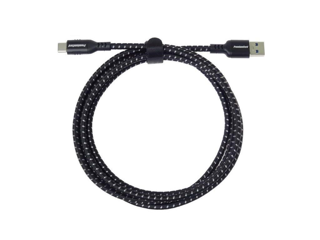 PremiumCord kábel USB-C - USB 3.0 A (USB 3.2 generácia 1, 3A, 5Gbit/s) 1,5m bavlnený opletk a kovové hliníkové konektory