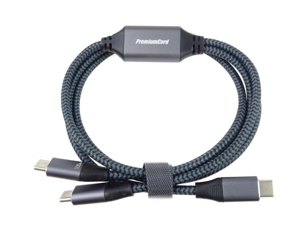 PREMIUMCORD Nabíjecí kabel USB-C, 2xUSB-C na USB-C, 100W, 1m, černá