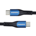 - Kábel je vybavený E-Mark čipom – riadiacou elektronikou, ktorá zabezpečuje komunikáciu pripojených zariadení. Takto je možné ľahšie dosiahnuť maximálnu možnú rýchlosť prenosu dát a nabíjania.