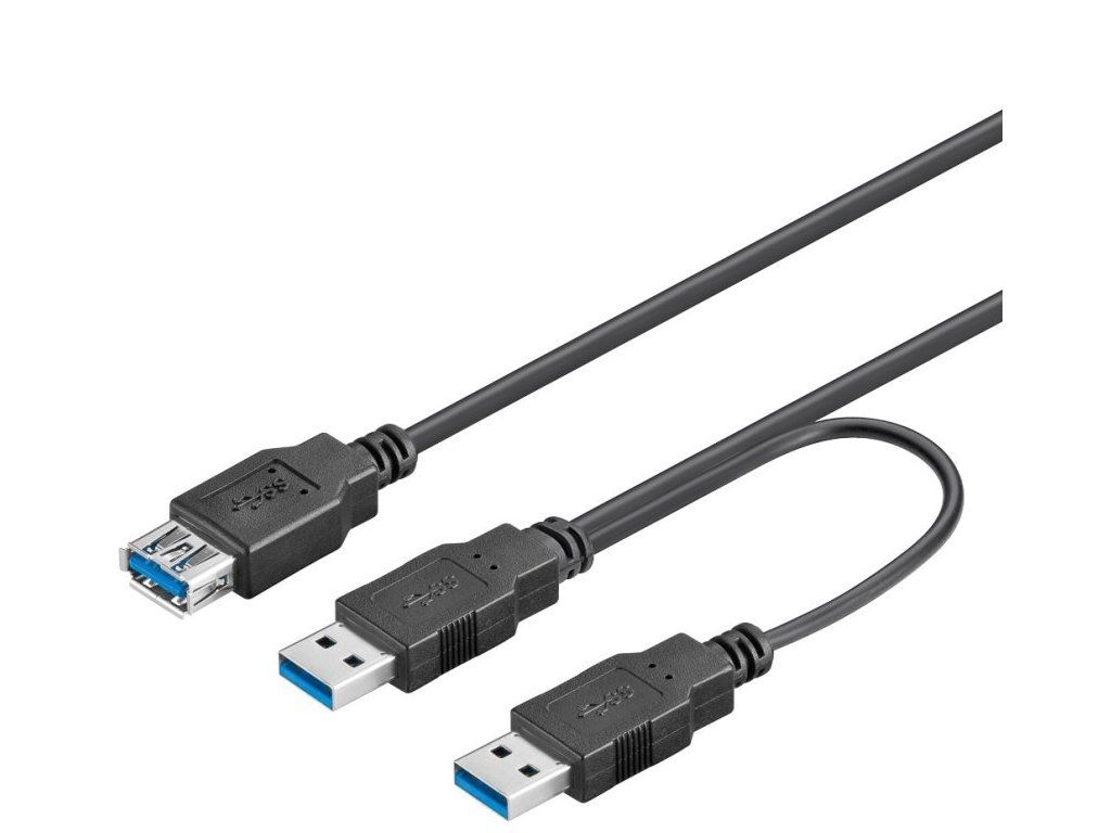 PremiumCord USB 3.0 napájecí Y kabel A/M + A/M -- A/F - USB 3.0 kabel SuperSpeed - Dvojité napájení pro externí HDD nebo jiné zařízení, pro posílení napájení - Konektory: vstup dva konektory USB3.0 A male pro zapojení do počítače, výstupní konektor USB3.0 typ:A female.Do výstupního konektoru je možné zapojit USB kabel do zařízení. - Přenosová rychlost: Super-speed 5Gbps, až 10x rychlejší než standardní USB2.0 - Zastříknuté konektory - Barva: černá - Délka: 40cm
